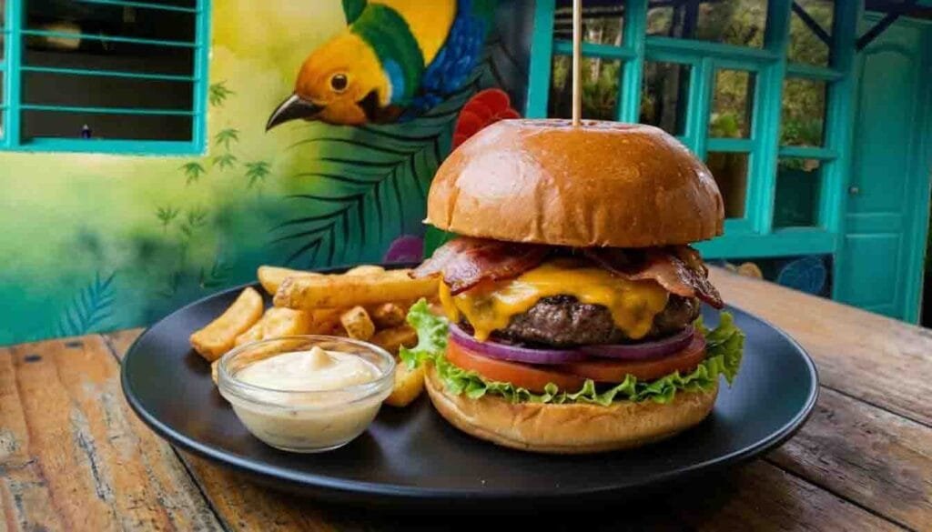 Hamburguesas Artesanales: Para una opción más casual pero con sello gourmet, sus hamburguesas en pan brioche de papa, como la de Pulled Pork o la de Bondiola con piña asada, son una explosión de sabor.