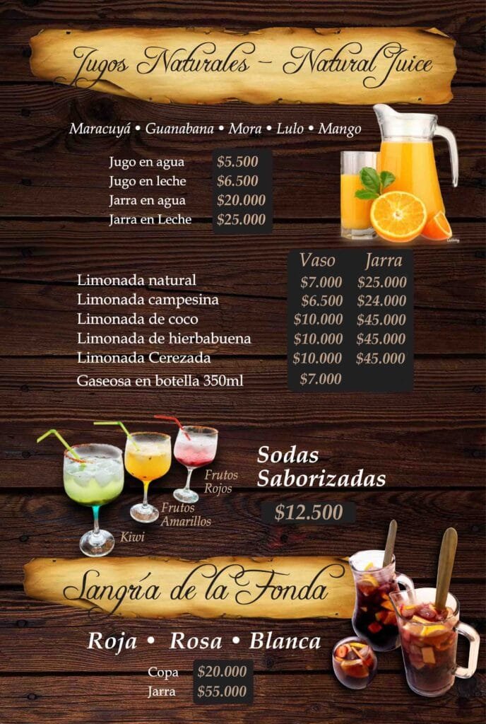 Bar: Como bar, cuenta con una variada selección de cervezas nacionales e importadas, cocteles clásicos y de autor (como el Leñador de la Fonda y la Mimosa del Arriero), vinos y licores premium.